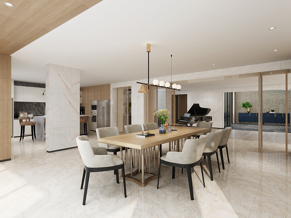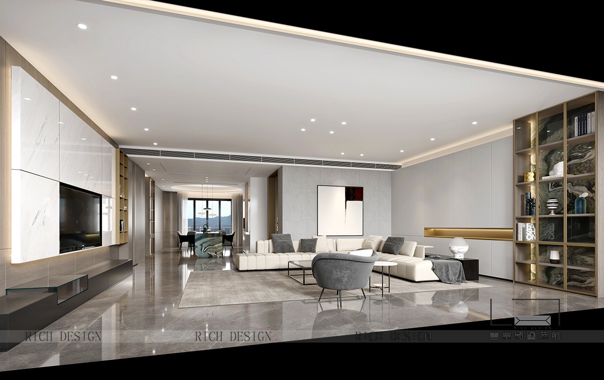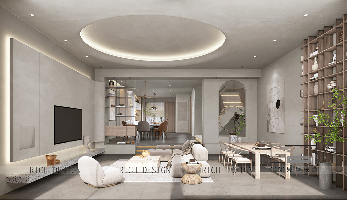 以光為引,納景為畫,融現代簡約與東方禪意,打造可游可居的詩意棲所。天然木石肌理與弧形家具相映,在留白中勾勒溫暖;通透界面消弭內外界限,讓庭院綠意、流水聲與室內琴聲、書香自由對話。最終在光影流動間,成就一座會呼吸的生活劇場。