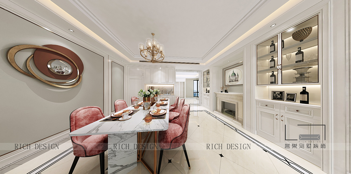 設計師在傳統法式的基礎上衍生出有新法式面貌的風格,在保留法式的傳統裝飾圓度下做簡化處理,形態簡約而不失奢華,打造利落率性的氣質,呈現出時尚與奢華的空間。